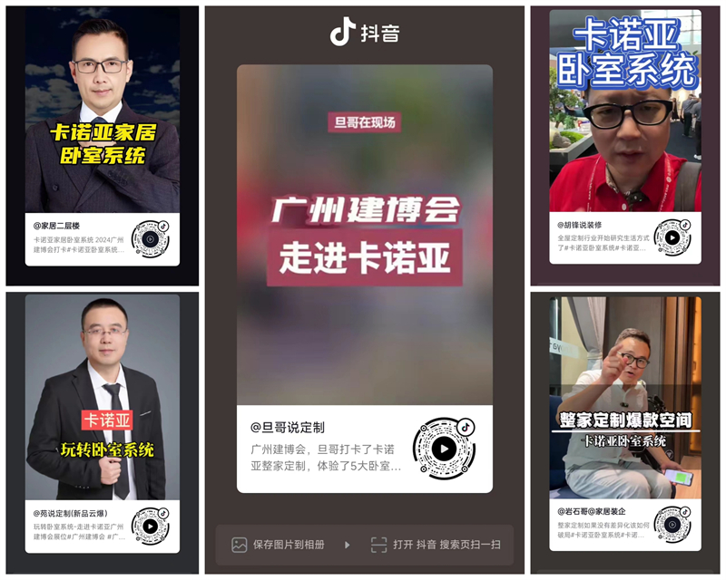 本屆建博會,卡諾亞打通線上線下流量場,橫向做輻射,縱向做滲透。以“卡諾亞臥室系統超級IP”為傳播主線,特邀抖音達人@旦哥說定制、@娜仁格日勒、巖石哥@家居裝企、@家居二層樓、@苑說定制、@胡鋒說裝修,小紅書達人@ Snow雪芙、@愛生活的阿胖,以及權威媒體搜狐焦點家居、慧亞招商網、中華全屋定制網等紛紛前來卡諾亞展館,進行專業探展與沉浸式體驗,以直播、短視頻等形式,集體為卡諾亞臥室系統背書。這些家居頂流KOL,展前利用短視頻打Call造勢,展中第一時間多維度現場體驗卡諾亞臥室系統的諸多亮點,為卡諾亞臥室系統在建博會上強勢吸睛助力,展后則深度解析卡諾亞臥室系統作為切入點,帶動整家定制的全案服務與成交推廣的財富密碼。