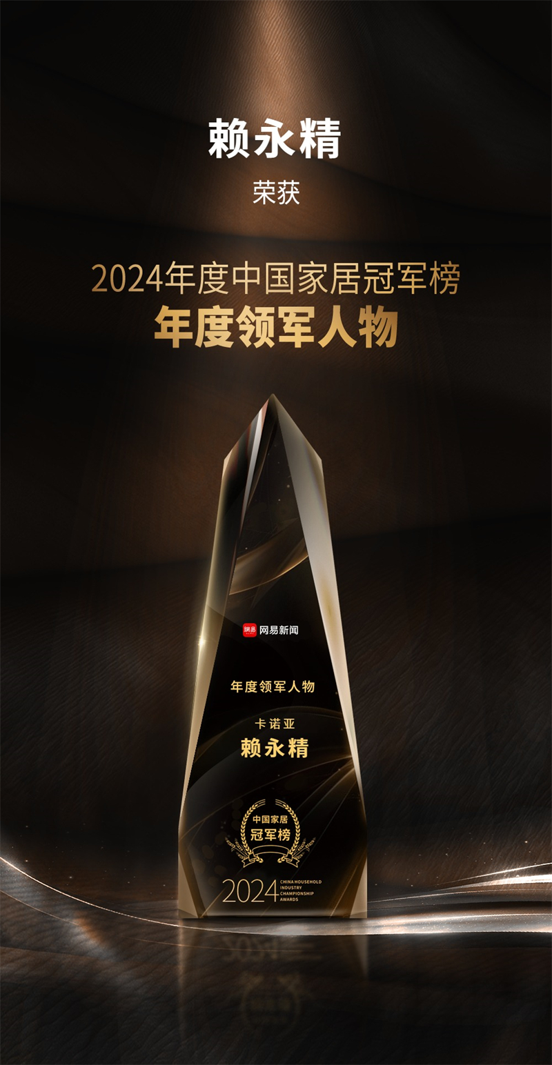 2月10日,網易“2024年度中國家居冠軍榜”重磅發布,以榮譽致敬榜樣,匯聚行業力量,助力家居產業蓬勃發展。卡諾亞憑借引領行業創變的輕高定品牌影響力及差異化的臥室系統,從眾多品牌中脫穎而出,榮膺“匠心質造品牌”獎項,以雄厚品牌勢能,助力推動美好生活方式定制。同時,卡諾亞董事兼副總裁賴永精以其對行業的卓越貢獻,榮獲“年度領軍人物”稱號。
