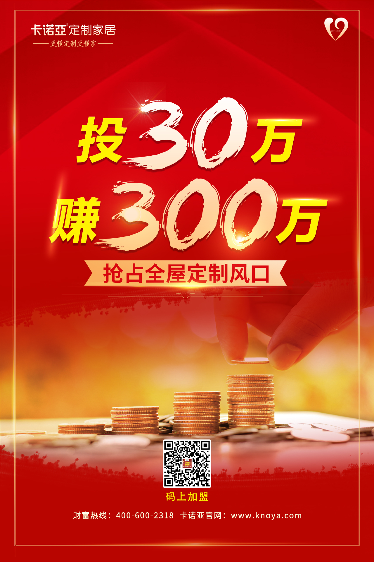 2020年即將過去,中國家居行業見證太多的市場不確定性,但家居裝修剛需還在,全屋定制行業需求強烈。目前消費主力人群基本都是80后、90后,據悉,國內商品房竣工率不斷提升,舊房改造包括未來農村市場需求非常大。同時,房價越來越貴,居住空間越來越小,相比成品家具,更多人趨向選擇全屋定制產品。2021年“中國定制家居十大品牌”卡諾亞,將邁入20周年,對定制行業充滿信心,正攜手全國1200余家經銷商開創新一輪造富運動。