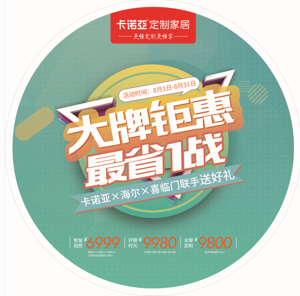 據了解,九月尚未到來,卡諾亞便搶先進入作戰狀態,策劃了針對剛需房裝修的“大牌鉅惠,最省1戰——卡諾亞×海爾×喜臨門聯手送好禮”全國優惠活動。8月1日-31日期間,卡諾亞牽頭各大戰略合作品牌,以定制家居帶動家裝、家飾、家電的一站式讓利活動,滿足消費者精裝修需求。